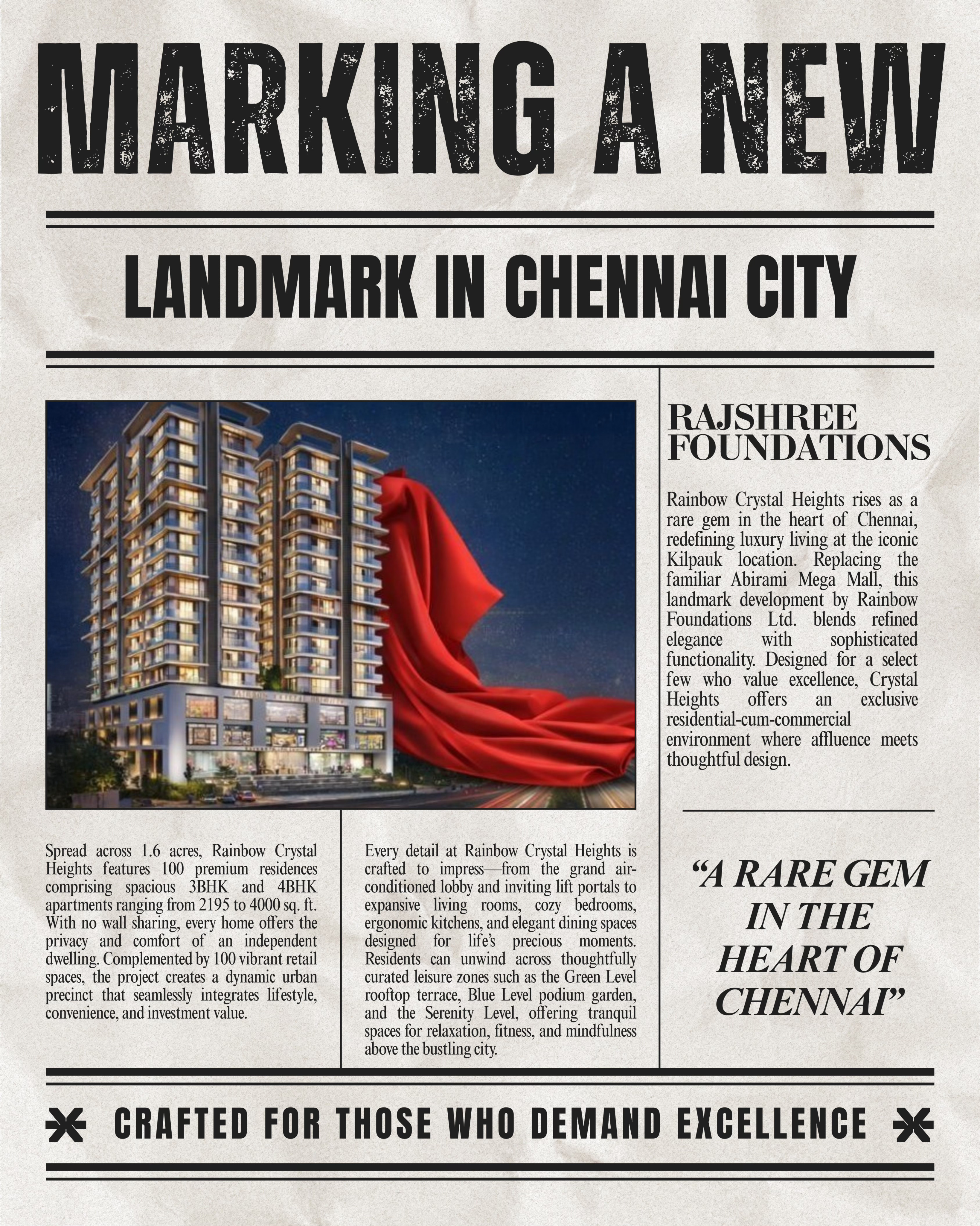 Rainbow Crystal Heights rises strong above Chennai’s skyline, proudly marking its place on the city’s map